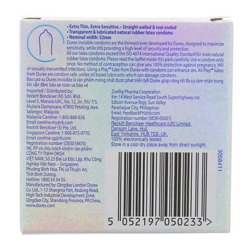 Bao cao su Durex Extra Thin là loại bao siêu mỏng, thiết kế ôm khít chống tuột, dẻo dai, giúp cho “cuộc yêu” thêm mặn nồng, tăng sự hưng phấn. Đặc biệt, sản phẩm được sản xuất hoàn toàn bằng mủ cao su thiên nhiên ân toàn cho sức khỏe, cũng như đáp ứng các yêu cầu và điều kiện sản xuất nghiêm ngặt, đảm bảo an toàn tối đa cho người sử dụng.