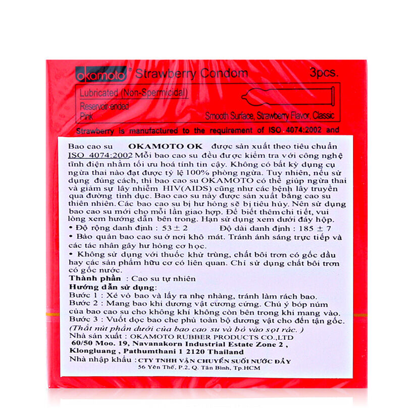 Bao cao su siêu mỏng hương dâu Okamoto Skinless Skin Strawberry hộp 3 cái