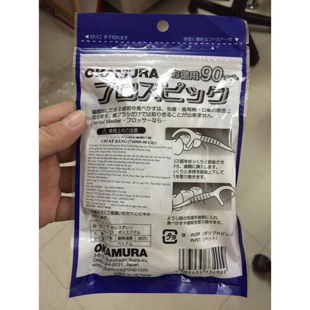 Tăm chỉ nha khoa Okamura giúp bạn loại bỏ dễ dàng và hiệu quả việc làm sạch các thức ăn thừa bám dính trên răng, làm sạch khoang miệng. Sản phẩm an toàn tuyệt đối bởi các thành phần thiên nhiên như: Sợi chỉ là những sợi tơ Nylon tổng hợp, tay cầm là nhựa Hips chính phẩm. Sản phẩm sử dụng dễ dàng và tiện dụng.