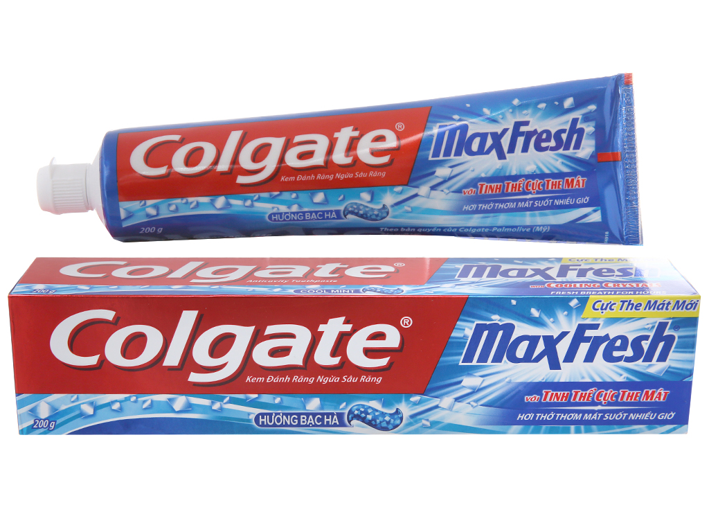 Kem đánh răng Colgate Max Fresh với các tinh thể the mát tự hòa tan, trộn lẫn trong kem sẽ mang đến cảm giác sảng khoái khi chải răng và hơi thở thơm mát suốt nhiều giờ. Kem giúp loại bỏ cặn thức ăn, ngừa sâu răng đồng thời làm trắng răng, cho hàm răng chắc khỏe, trắng bóng tự nhiên.
