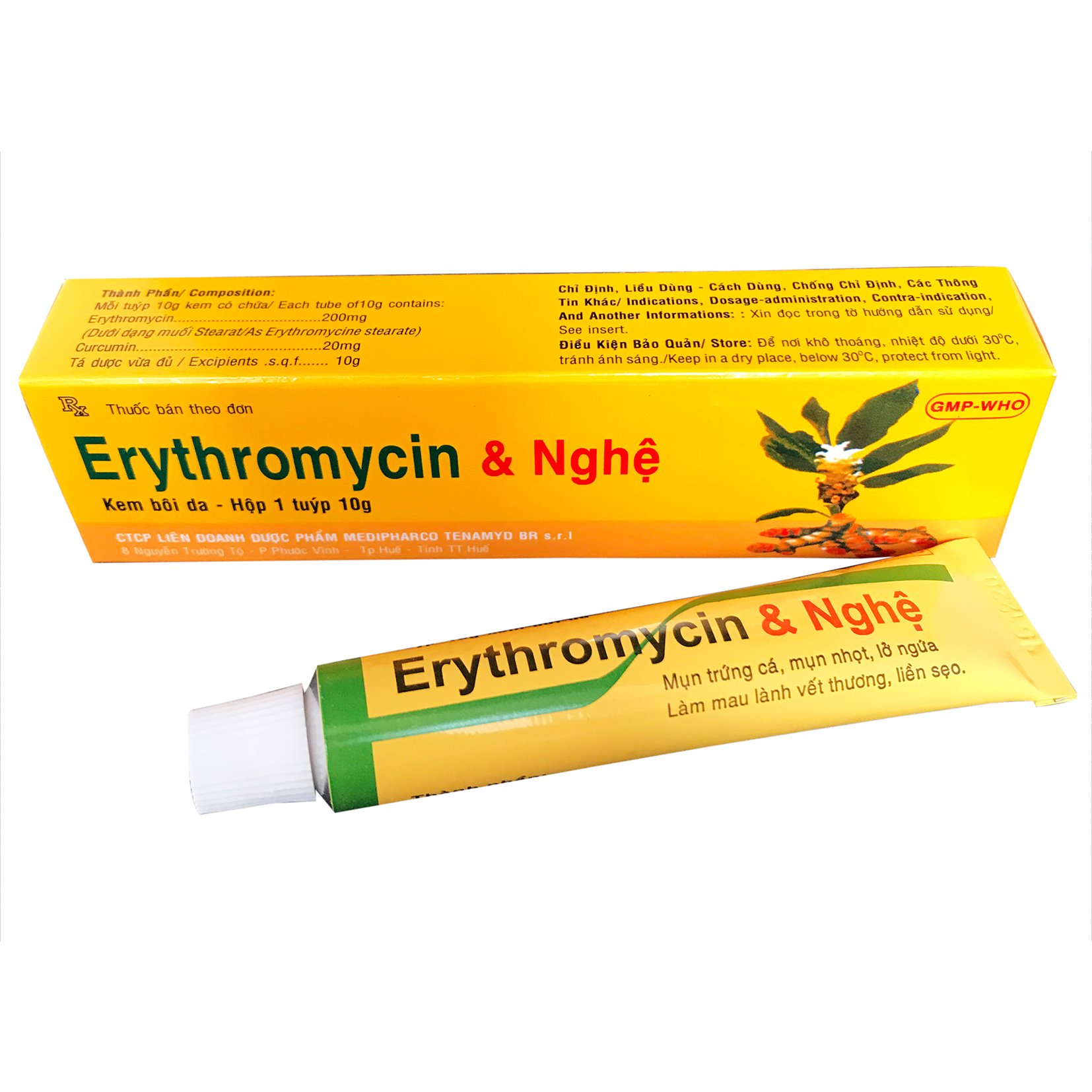 Mỗi 10 gam chứa: Erythromycin (dưới dạng Erythromycin stearat) 200mg; Curcumin 20mg