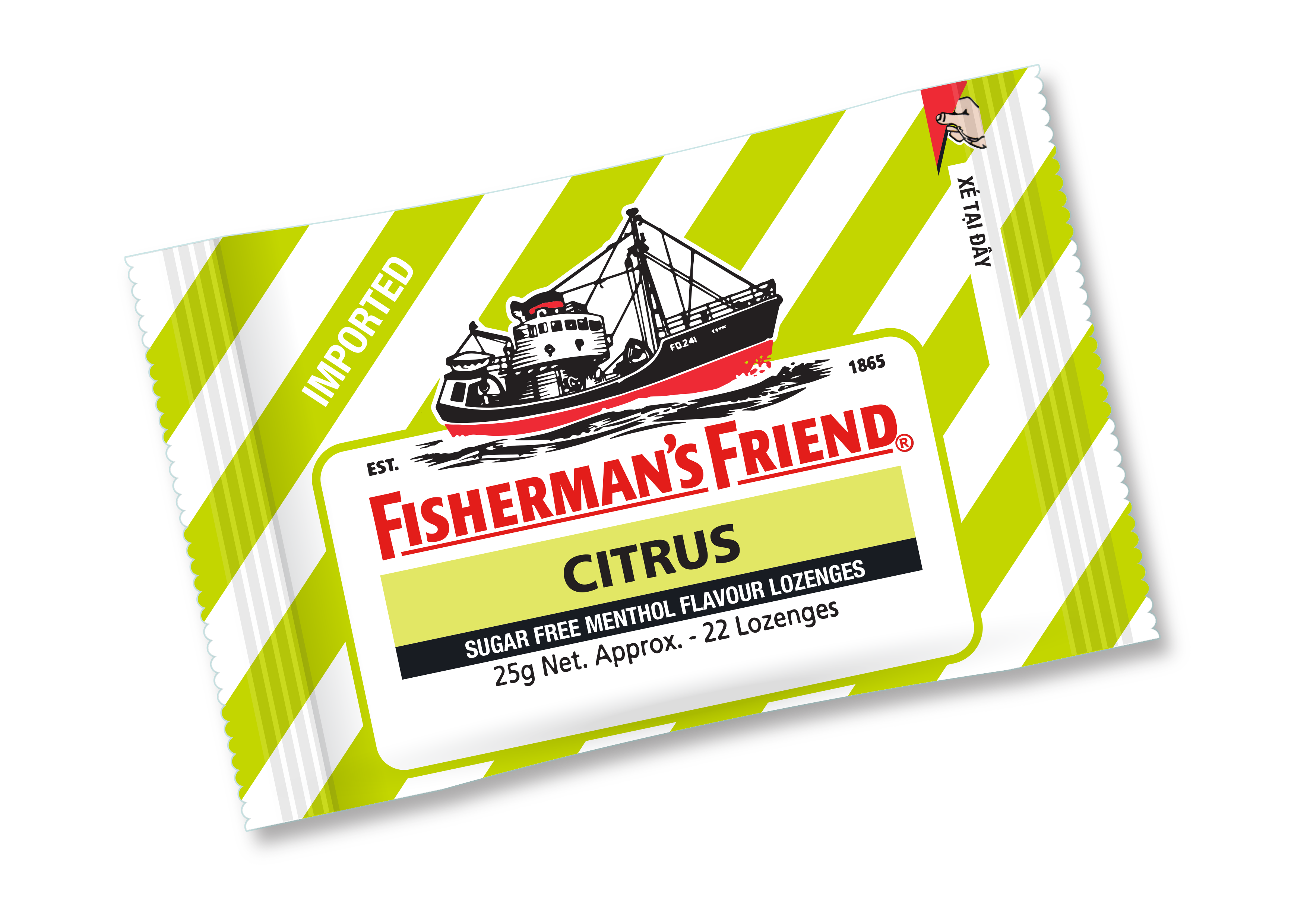 Kẹo Cay Con Tàu Fisherman’s Friend Vị Cam Chanh Gói 25g vốn là kẹo ngậm do dược sĩ Fleetwood James Lofthouse bào chế cho ngư dân tại thị trấn Fleetwood để họ mang theo trong những chuyến đi biển đầy bão tố và giá lạnh tại ngư trường Bắc Đại Tây Dương. Sản phẩm tốt cho sức khỏe, điều trị các bệnh nhiễm lạnh, cảm, sưng, viêm vòm họng. Kẹo cay được chiết xuất từ tinh dầu bạc hà và khuynh diệp, viên ngậm được sản xuất theo đúng công thức truyền thống, không sử dụng màu, mùi nhân tạo.