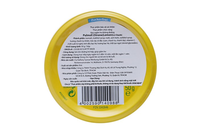 - Kẹo ngậm ho không đường vị chanh chứa những thành phần dược liệu chiết xuất từ tự nhiên.
