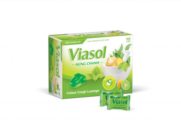 Kẹo Ngậm Giảm Ho Viasol Húng Chanh với các thành phần thiên nhiên, giúp nhuận phế, giảm ho, giảm các triệu chứng ho gió, ho khan, ho do thay đổi thời tiết.