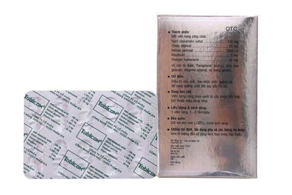 – Hoạt chất: Natri chondroitin Sulfat 100mg, Retinol palmitat 2500 I.U, Cholin bitartrat 25mg, Riboflavin 5mg, Thiamin hydroclorid 20mg.