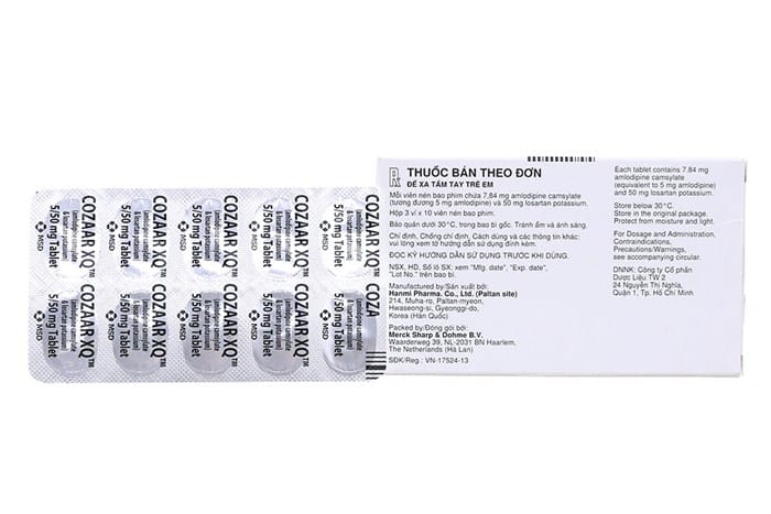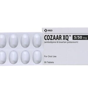 COZAAR XQ viên nén bao phim hình bầu dục màu trắng chứa 50,00 mg losartan kali và 7,84 mg amlodipine camsylate (tương đương 5 mg amlodipine).