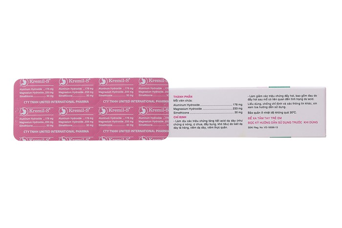 Aluminum hydroxide và magnesium hydoxide trung hòa acid HCI trong dạ dày và làm giảm các triệu chứng dư acid có liên quan đến loét tiêu hóa, viêm dạ dày, viêm thực quản và khó tiêu. Simethicone có hiệu quả để làm giảm chứng đầy hơi có liên quan đến các rối loạn acid đường tiêu hóa. Sự phối hợp giữa aluminum hydroxide và magnesium hydroxide trong Kremil-S viên nhai có tính kháng acid, do đó trung hòa hiệu quả acid trong dịch vị.