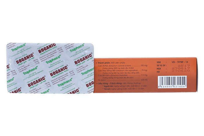 Ghi chú: Người tiểu đường: có thể dùng Boganic viên bao phim hoặc viên nang mềm