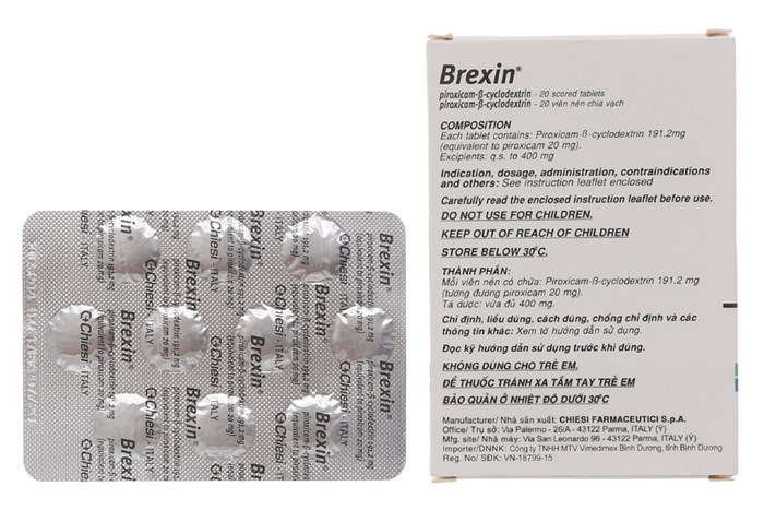 BREXIN là thuốc chống viêm giảm đau, dùng làm thuyên giảm một số triệu chứng do viêm xương – khớp (bệnh hư khớp: bệnh thoái hóa khớp), viêm khớp dạng thấp và viêm cột sống dính khớp (thấp khớp ở cột sống), như sưng, cứng, đỏ và đau khớp. BREXIN không chữa được viêm khớp và chỉ giúp đỡ bệnh nhân chừng nào họ còn đang dùng thuốc.