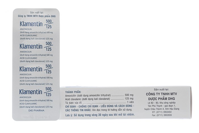 – Hoạt chất: Amoxicilin 500mg (dưới dạng amoxicilin trihydrat); acid clavulanic 125mg (dưới dạng kali clavulanat).