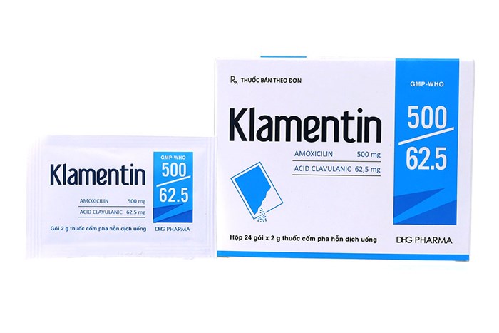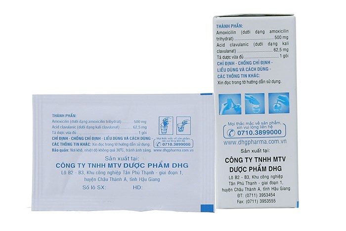 Hoạt chất: Amoxicilin (dưới dạng amoxicilin trihydrat) 500mg, Acid clavulanic (dưới dạng kali clavulanat) 62.5mg.