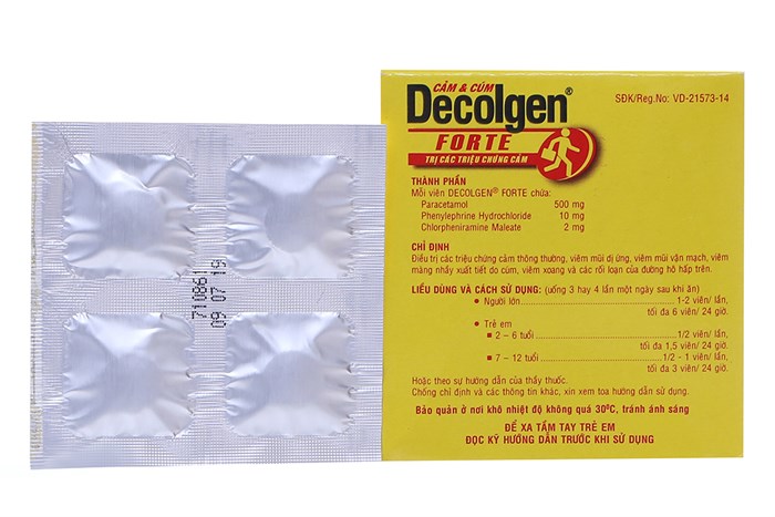 - Meta Description: Thuốc cảm cúm Decolgen Forte (Decolgen đỏ) giúp giảm nhanh sốt, đau đầu, nghẹt mũi và viêm mũi dị ứng. Xem liều dùng an toàn cho người lớn và trẻ em.