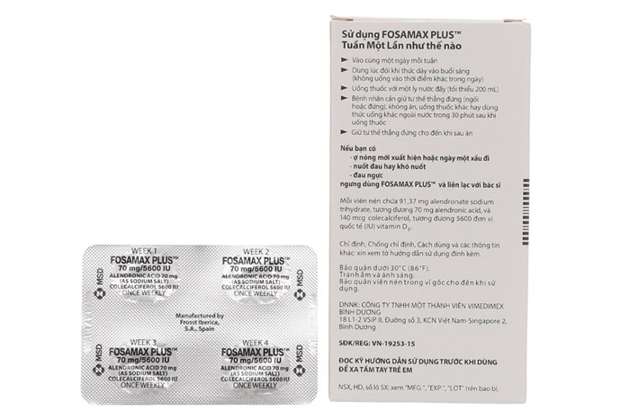 Người bệnh cần bổ sung canxi và/hoặc vitamin D nếu lượng bổ sung chế độ ăn không đủ (xem phần thận trọng). Thầy thuốc cũng cần quan tâm đến lượng vitamin D đã có trong các vitamin và các thực phẩm bổ sung. FOSAMAX PLUS 70mg/2800IU và 70mg/5600IU cung cấp lượng vitamin D cho mỗi tuần, căn cứ vào liều hàng ngày lần lượt là 400 và 800 đơn vị.
