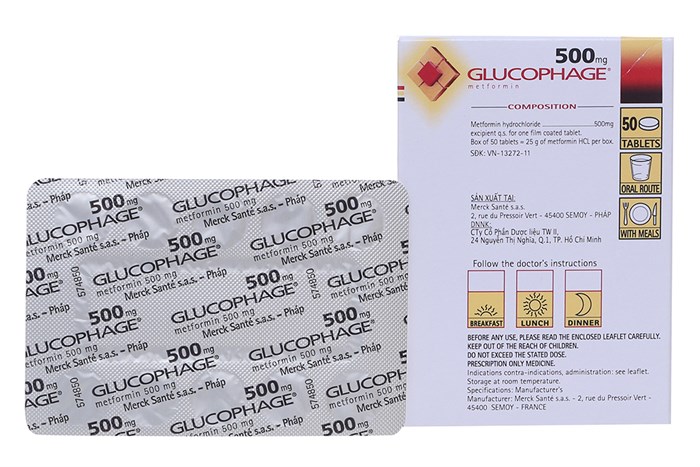 Hộp 05 vỉ x 10 viên = 50 viên = 25g metformin HCl