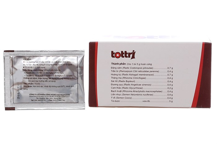 Hoạt chất: Đảng sâm (Radix Codonopsis pilosulae) 0.7g, Trần bì (Pericarpium Citri reticulatae perenne) 0.4g, Hoàng kỳ (Radix Astragali membranacei) 0.7g, Thăng ma (Rhizoma Cimicifugae) 0.4g, Sài hồ (Radix Bupleuri) 0.4g, Đương quy (Radix Angelica sineisns) 0.4g, Cam thảo (Radix Glycyrrhizae) 0.2g, Bạch truật (Rhizoma Atractylodis macrocephalae) 0.4g, Liên nhục (Semen Nelumbinis nuciferae) 0.4g, Ý dĩ (Semen Coicis) 0.4g.