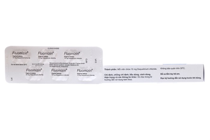 Dequalinium chloride 10mg, tá dược vừa đủ 1 viên.