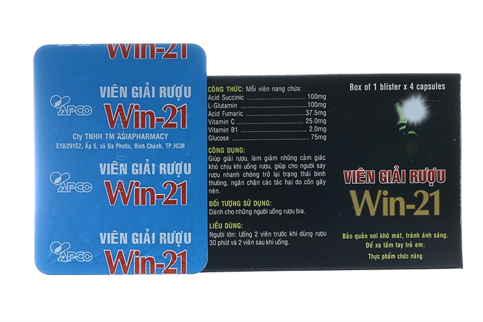 Win-21 giúp giải rượu, làm giảm những cảm giác khó chịu khi uống rượu, giúp cho người say rượu nhanh chóng trở lại trạng thái bình thường, ngăn chặn các tác hại do cồn gây nên.