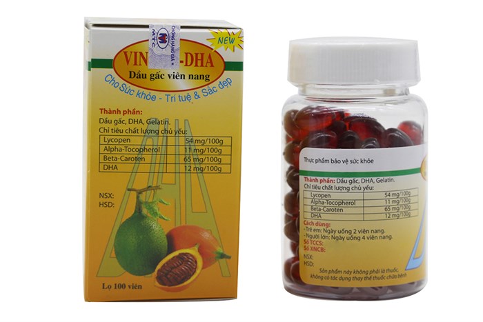 VINAGA-DHA là thực phẩm bảo vệ sức khỏe, một loại dầu chiết xuất từ quả Gấc được bổ sung thêm DHA, nên không độc hại, không có tác dụng phụ, dùng uống hàng ngày để bảo vệ sức khỏe, chống lão hóa, cải thiện sự phát triển của cơ thể và gìn giữ tuổi thanh xuân.