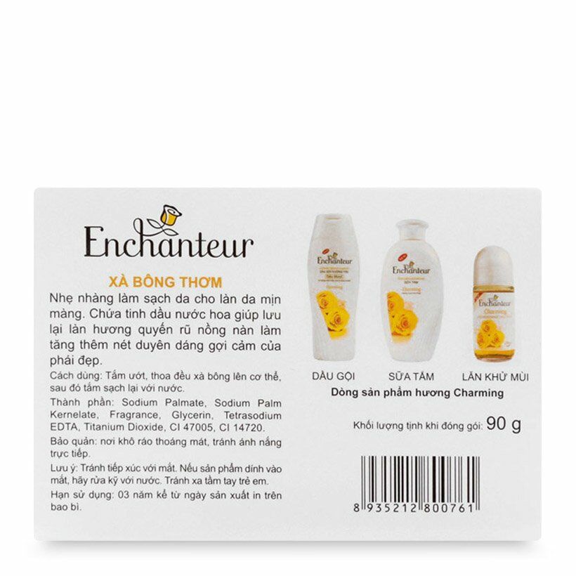 Xà bông Enchateur Charming nhẹ nhàng làm sạch, cho làn da mịn màng. Đồng thời sản phẩm chứa tinh dầu nước hoa giúp lưu lại làn hương quyến rũ nồng nàn làm tăng thêm nét duyên dáng gợi cảm của phái đẹp.
